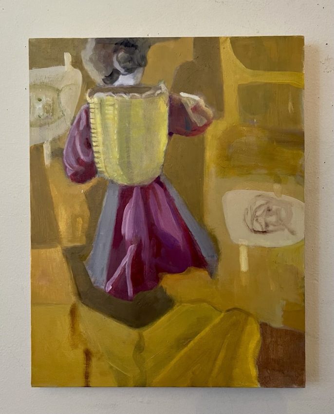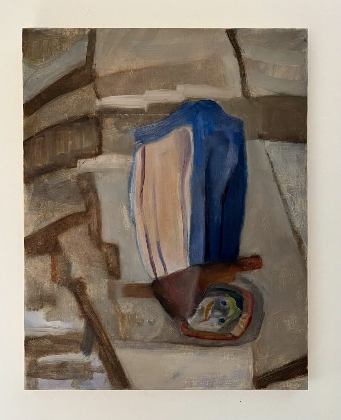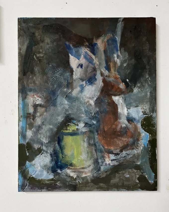 2024, acrylic, oil, fabric patches, 24 x 18 inches