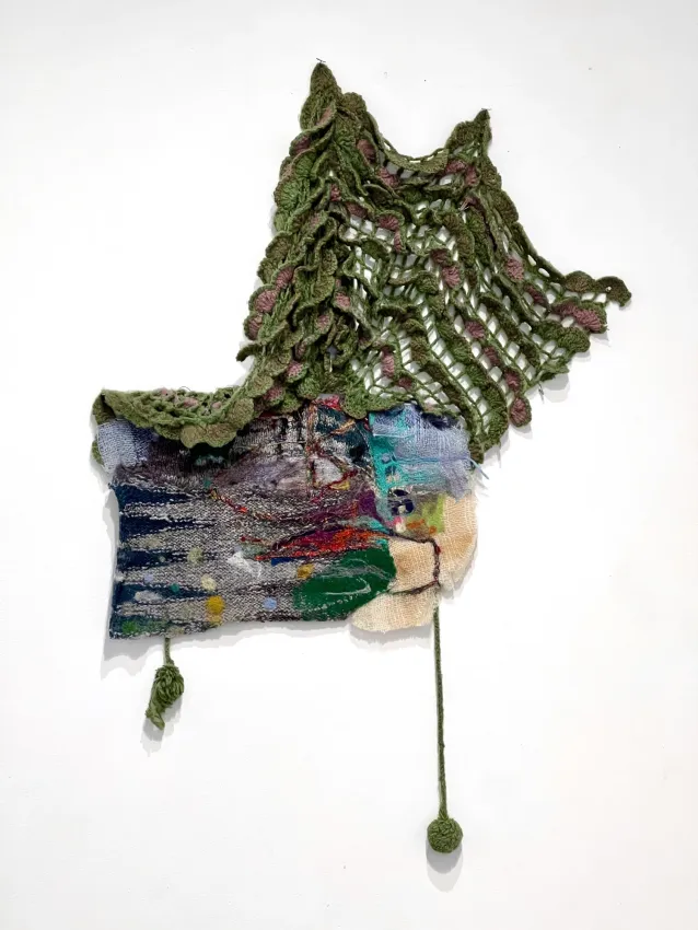 2025, mixed: wool felting, stitching, and silk, 18 x 11 inches