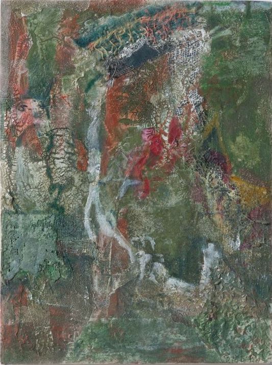 2023-24, Mixed media including, flashe, seaweed on canvas, 32 x 22 inches